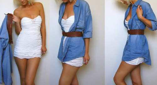 Трансформація чоловічої сорочки в жіноче плаття – головний тренд цього року. Така модель сукні надає образу витонченості та жіночності, а також відчуття легкості і свободи одночасно. Так що запозичте парочку непотрібних речей з гардероба вашого приятеля. Нижче представлено кілька ідей, як перетворити стару чоловічий одяг стильний жіночий одяг: