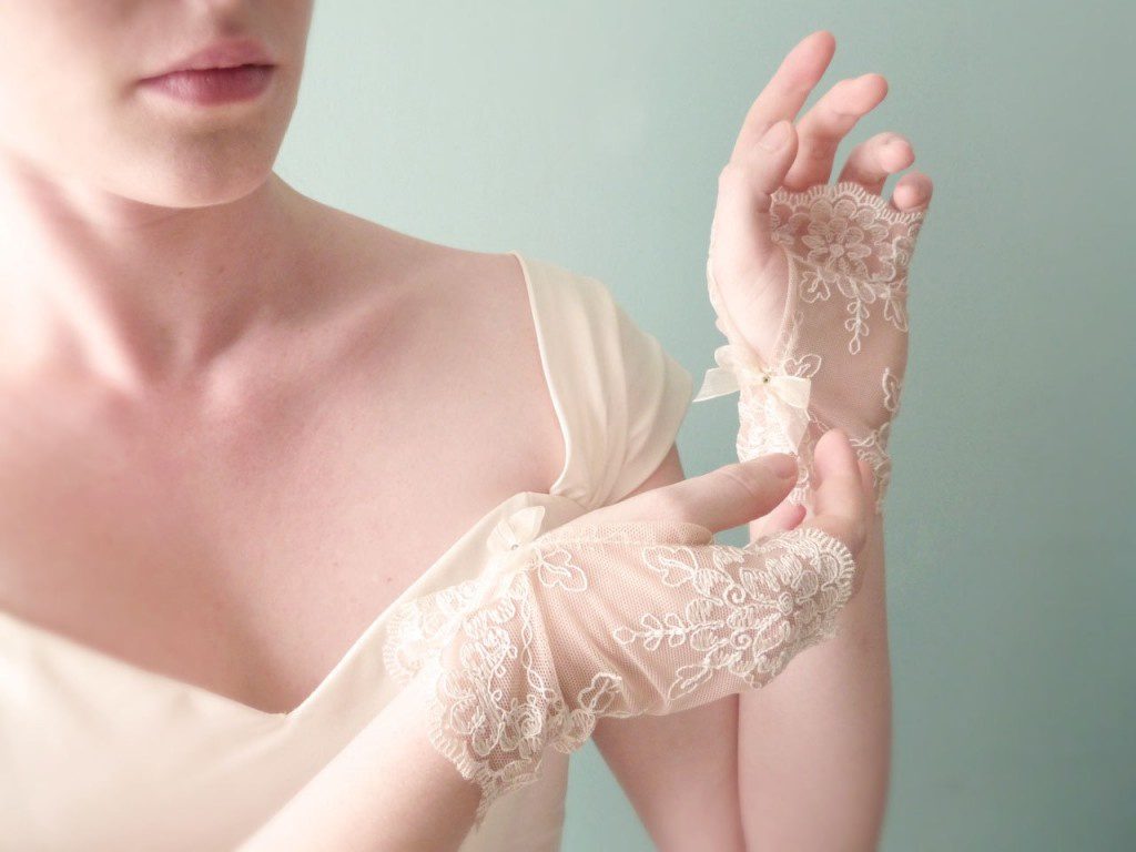 Рукавички для нареченої – недорогий аксесуар, ви не витратите на нього багато фінансів. Більшість наречених все ж купують їх, щоб виглядати на своєму весільному торжестві на всі сто! Красиво виглядають руки дівчини в рукавичках і на весільному фото, коли наречена тримає в них свій букет.