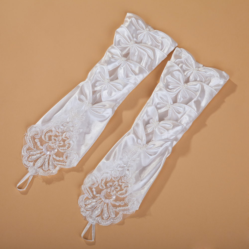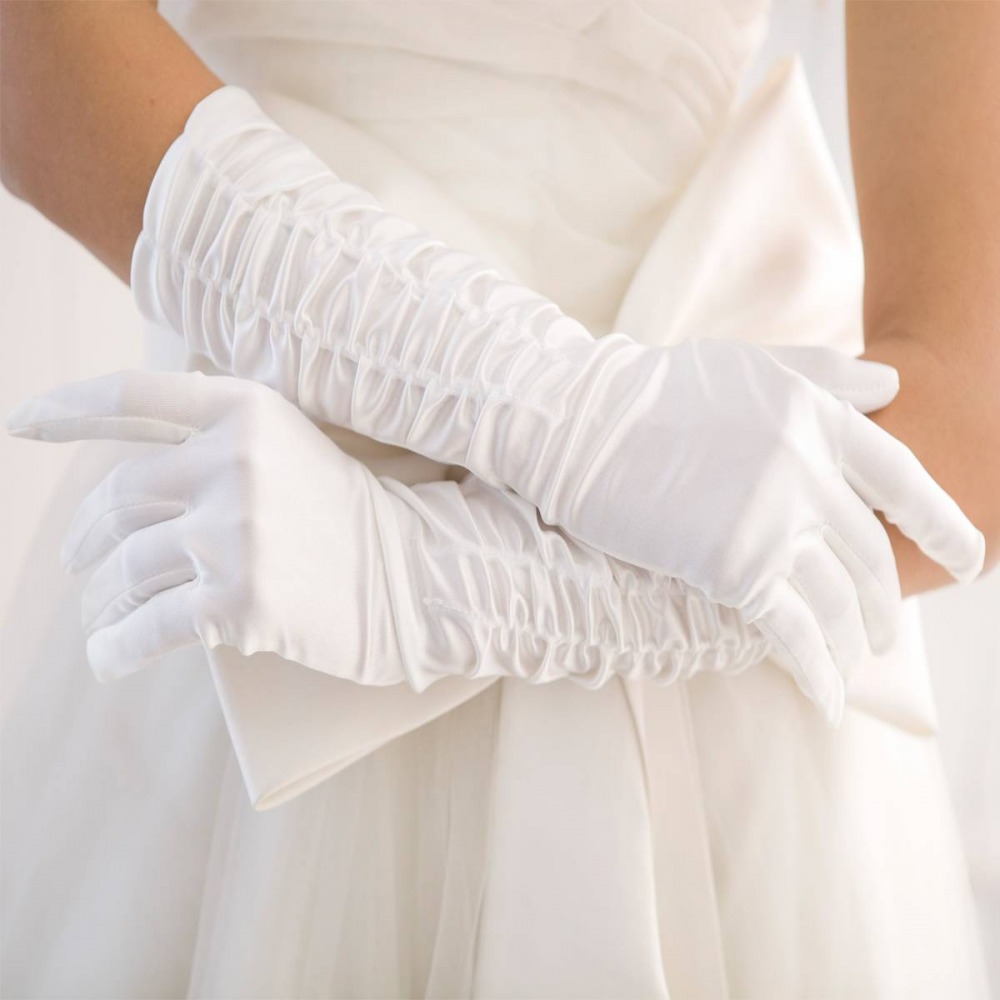 Білі весільні рукавички не виходять з моди і залишаються в тренді вже багато років. Вони можуть бути простими – без декору, або прикрашеними різними елементами. Атласні аксесуари прикрашають вишивкою, стразами і намистинами. Довгі рукавички з мережива не вимагають декору взагалі – вони і так виглядають красиво. Хоча дизайнери можуть експериментувати і з ними, надаючи виробам шикарний вигляд. Мітенки — довгі і короткі, зшиті з атласу, декорують мереживом, ці два матеріали відмінно поєднуються в одному аксесуарі.