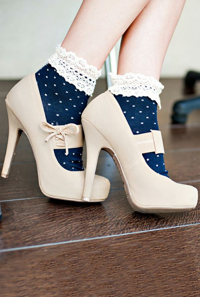 Якщо хочеться відчути себе маленькою дівчинкою, то шкарпетки з принтом будуть як не можна до речі. При цьому колір взуття не має бути контрастним, інакше принт «загубиться». Приміром, вибираючи шкарпетки з Губкою Бобом, можна підібрати сині туфлі, які тільки підкреслять морську тематику, але не затьмарять головного героя аксесуара.