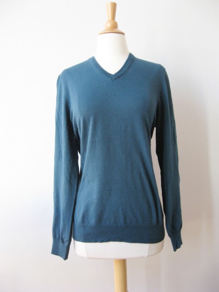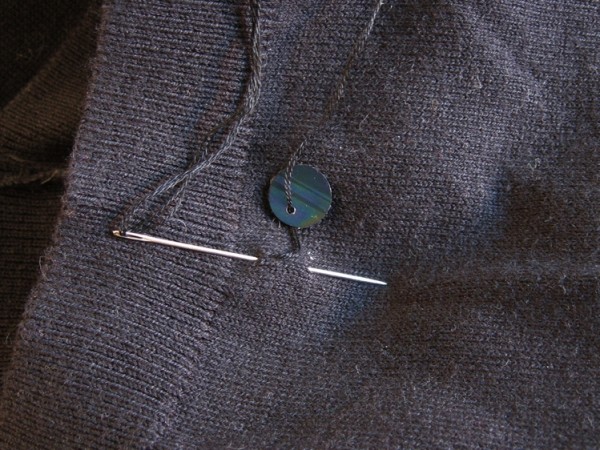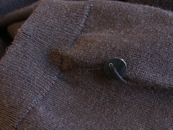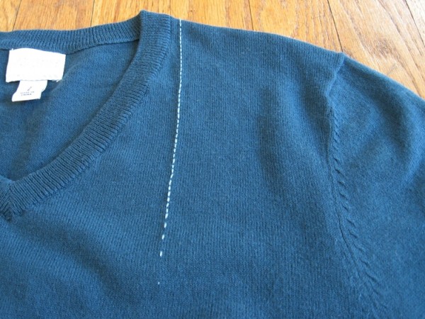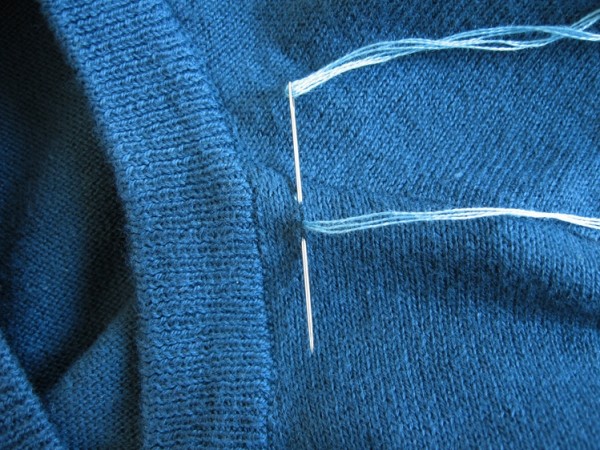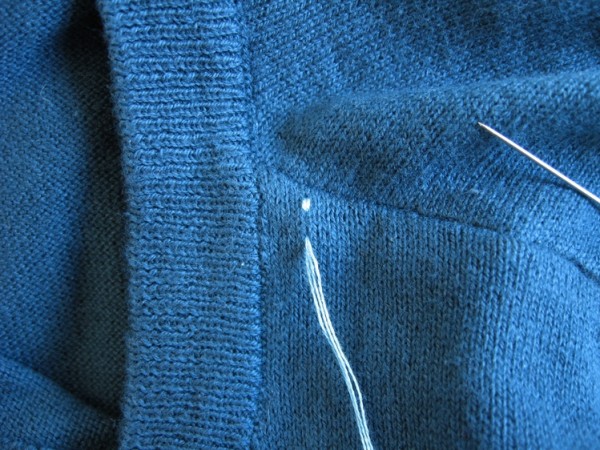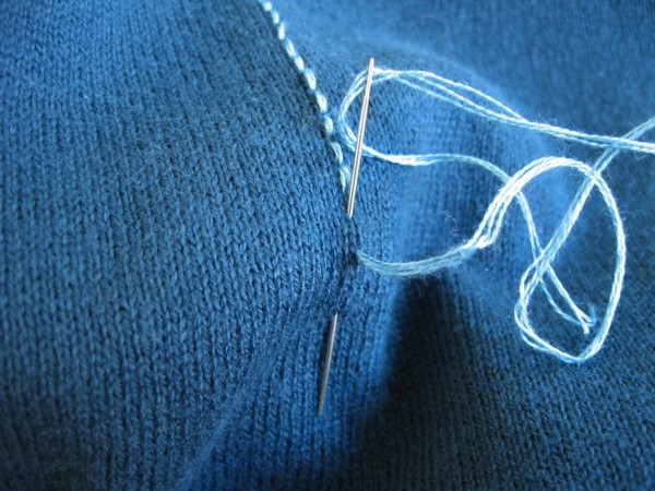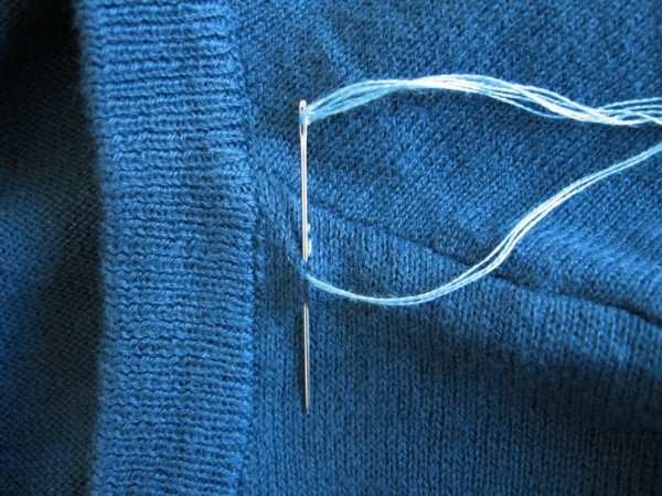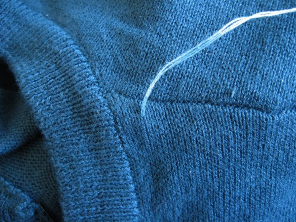 В кінці закріпіть шов вузликом. Якщо ви взяли светр нещільної в’язки, оберніть нитку навколо останнього стібка, щоб шов не розпустився.