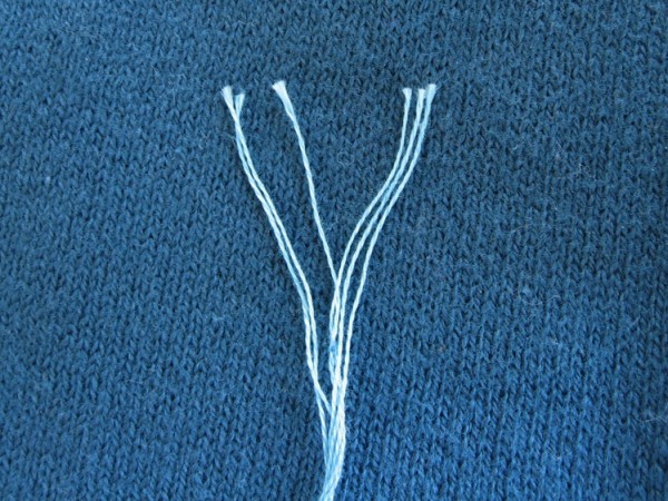 Нитка складається з 6 пасм, які відокремлюються один від одного. В залежності від довжини рядка, вам знадобиться від 1 до 6 пасм. Якщо ви взяли мішкуватий светр, вам знадобляться всі 6, а на тонкий джемпер – не больше2-3.