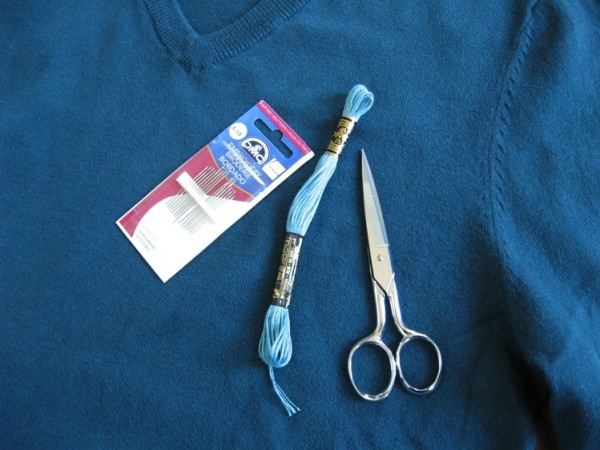 Я зупинила свій вибір саме на нитках для вишивання з кількох причин. По-перше, вони зроблені з бавовни, тому відмінно триматися на одязі. По-друге, у цих ниток більше 100 забарвлень. По-третє, нитка гладка і зручна при шитті. І нарешті, вони дешеві – моток коштує в середньому близько 50 центів, так що декорування нудною речі обійдеться в копійки!