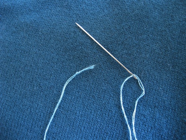 Потягніть нитку вгору таким чином, щоб вона щільно лежала на поверхні тканини, але не перетягувати.