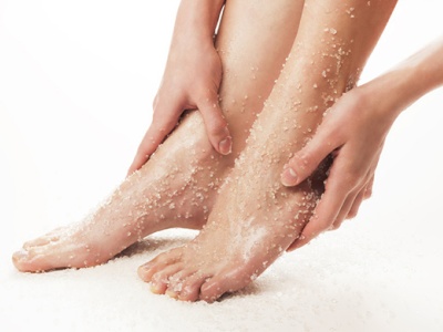 Спеціальні скраби для ніг, як правило, відрізняються від інших більш грубим абразивом. При бажанні можна зробити скраб і самостійно, з’єднавши цукор, сіль, перемелену шкаралупу або горіхи з рослинним маслом. Але, думається, простіше купити готове косметичний засіб, ніж готувати дику суміш на кухні.