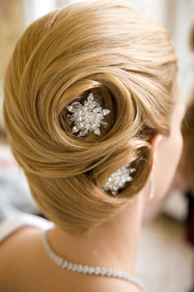 Для вечірнього виходу або урочистого заходу найкраще зробити гладку мушлю, доповнену красивими аксесуарами — гребінець, квітка, діадема або шпилька зі стразами. Прикраса можна фіксувати як навколо зачіски, так і безпосередньо на ній. А тим, хто віддає перевагу ще більшу вишуканість і витонченість, підійде такий варіант: французька черепашка з наявністю вільної пасма або локона збоку.