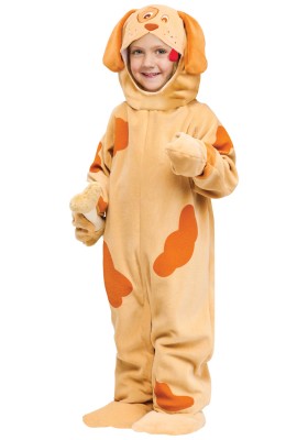 Нижче представлений нескладний варіант костюма цуценя. Його може зробити будь-який бажаючий. Такий костюм може підійти як дівчинці так і хлопчику. Щеня може бути будь-якої колірної гами в залежності від уподобань дитини або від того, які матеріали є в наявності. Не обмежуйте себе квітами, можливо, ви захочете створити своє фантастична тварина з яскравою незвичайної забарвленням.