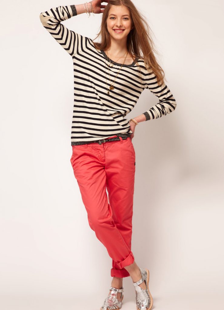 - Сучасний дизайн припускає безліч сміливих експериментів. Тому зараз дамам пропонується приміряти штани-чінос таких несподіваних барв, як червоний, синій і жовтий.
