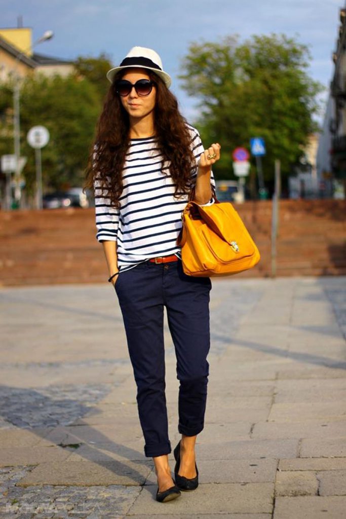 - Босоніжки На літо і штани-чінос з тонкої натуральної тканини — чудовий варіант для міських прогулянок. В цій якості вони цілком замінюють собою джинси.