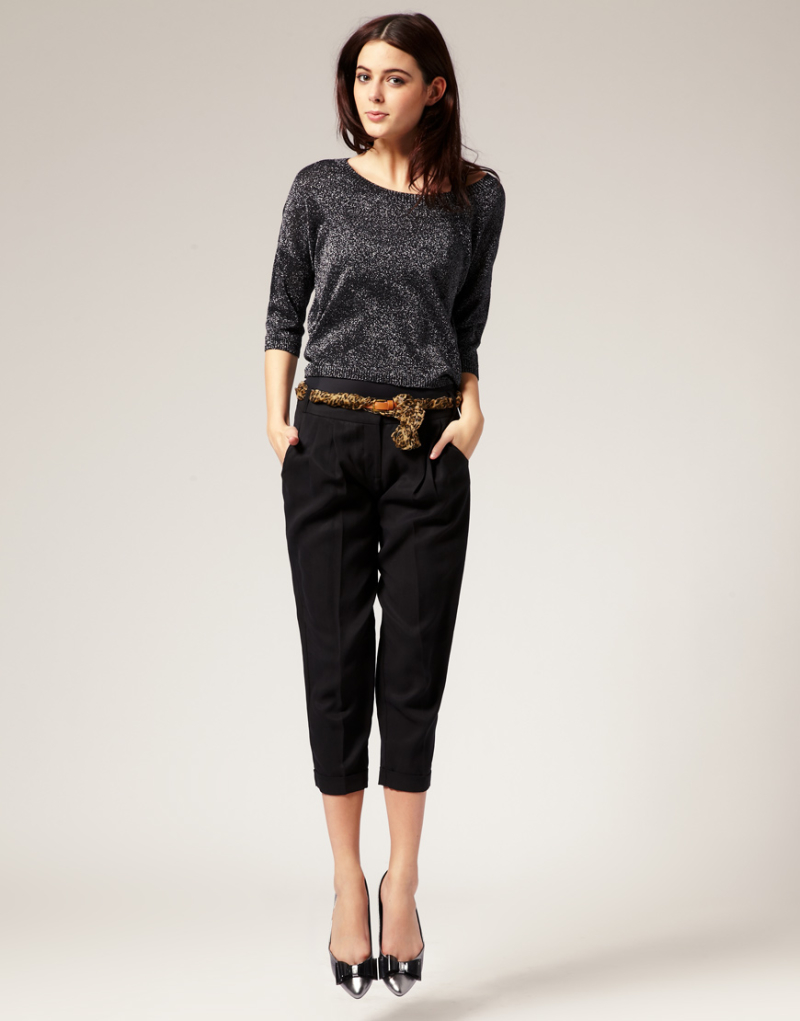 - Жінкам з фігурою «груша» небажано носити подібні штани, як вони зроблять силует ще більш об’ємним саме в тому місці, де у «груш» і без того є зайвий обсяг. Але в деяких випадках, якщо модель не занадто широка і поєднується з високими підборами, носіння може бути цілком прийнятно.