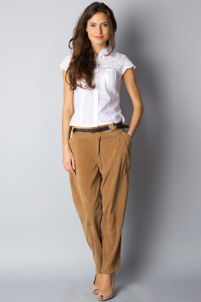 - Якщо повна жінка має високий зріст, то в цьому випадку штани-чінос послужать їй відмінну службу, якщо не занадто облягають. Вони витягнутий силует, зробивши його стрункішою. Але тільки в поєднанні з взуттям на підборах.