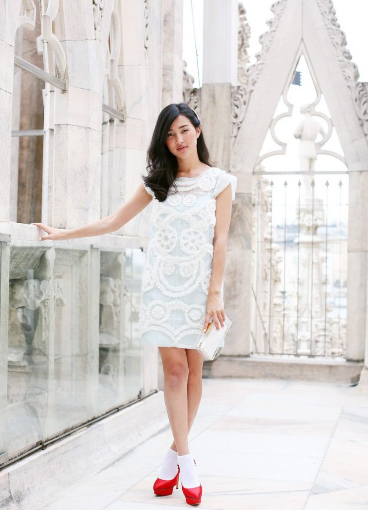 Очевидно, що червоні модні туфлі чудово виглядають з класичними синіми і темними джинсами. Але якщо туфлі одягаються під спідницю, то варто враховувати такий важливий і тонкий елемент, як колготки. Вони повинні бути обов’язково тілесного кольору, а краще обійтися взагалі без них. Не варто вибирати блискучі колготки з лайкрою. Але під чорно-біле плаття цілком припустимі чорні тонкі колготки. В інших випадках – тільки бежеві.