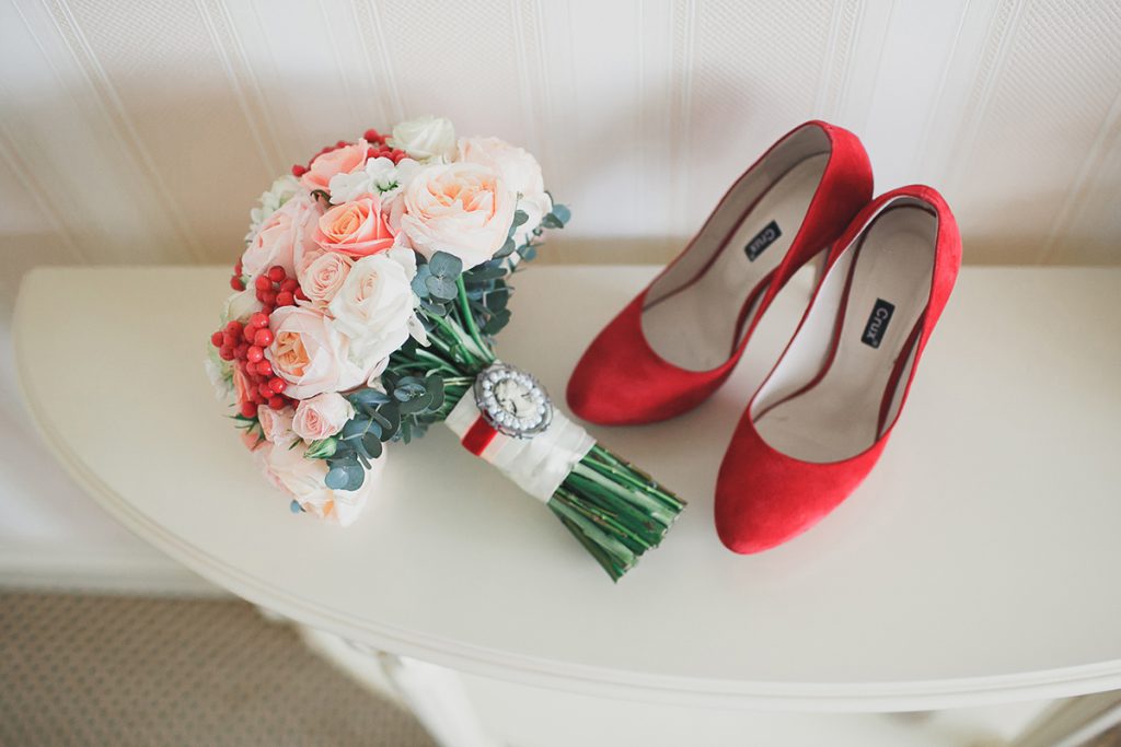 Червоні весільні туфлі