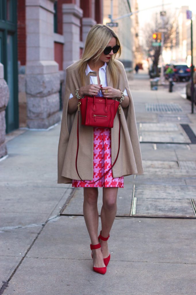 - Одяг з принтом. Основна умова – одяг, що має малюнок, повинна мати відтінки червоного. Модний принт не зобов’язаний бути повністю червоного кольору, важливі лише деякі елементи, інакше може виникнути перевантаження кольору в образі.