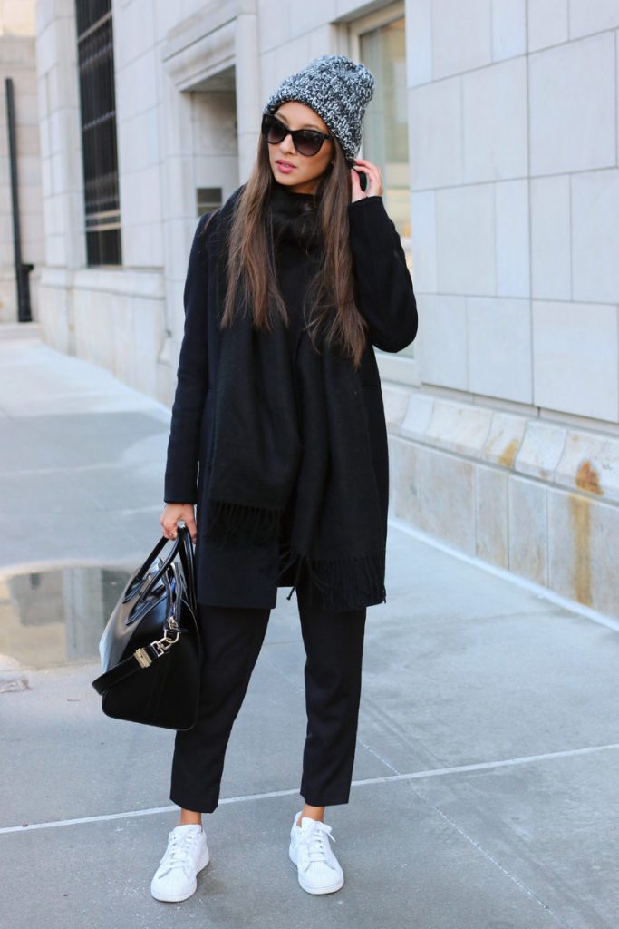 Нейтральність чорного кольору дозволяє миттєво змінювати образи простою зміною аксесуарів. Захотіли яскравості? Надіньте зелений або жовтий шарф. Потребуєте романтику? Замініть стандартну шапку капелюхом або елегантним зимовим хусткою.
