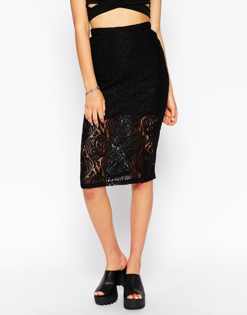 Гідне місце зайняли короткі мереживні спідниці. Вітаються асиметричні елементи, драпірування і вставки. Оманливе проста довга чорна спідниця з мережива неодмінно припаде до душі романтичним натурам.