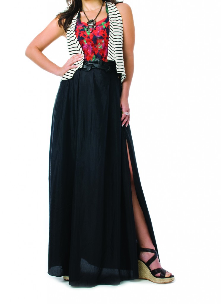 — струмуюча довга чорна спідниця прийде на допомогу власницям худих ніжок. Такий витончений варіант підкреслить плавність ліній і приховає недоліки.