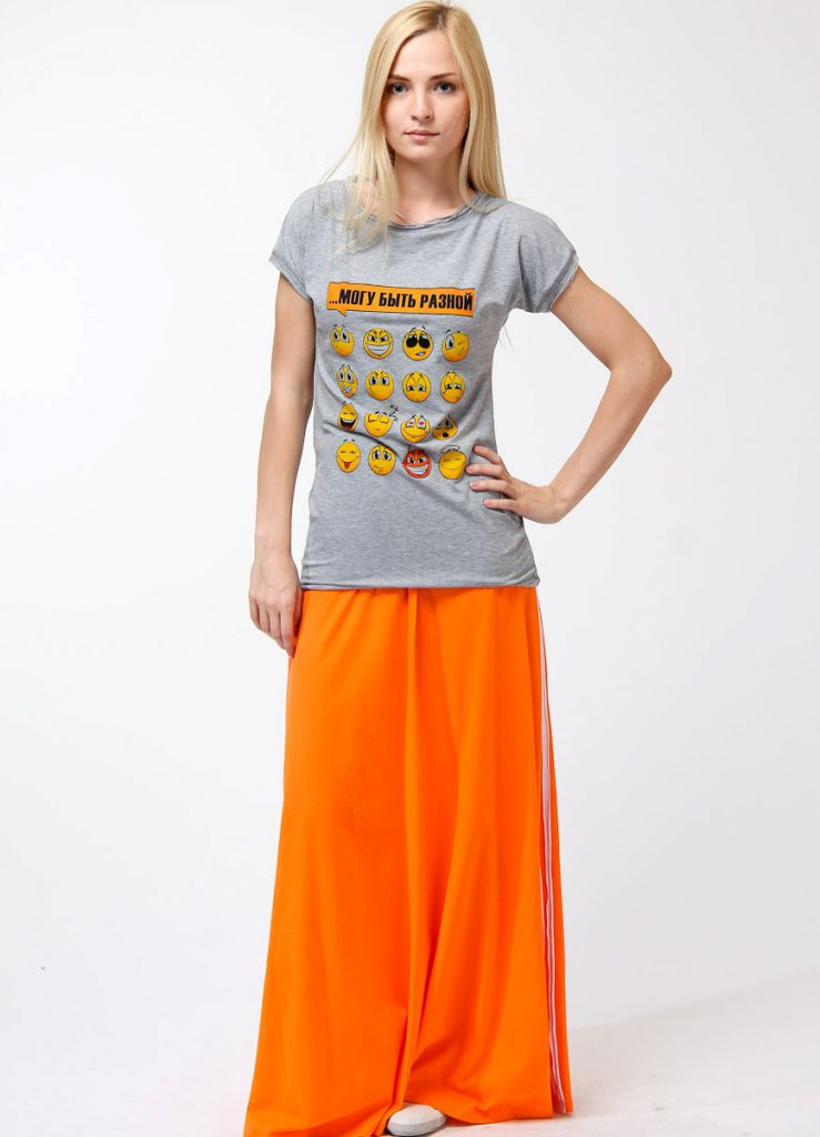 Розібравшись із загальними правилами, залишається нерозгаданим головне питання: з чим носити довгу спідницю? Влітку її можна одягти до футболці, сорочці і топу. Колір одягу може бути контрастним, так і однотонним. Наприклад, довга синя спідниця поєднується з жовтою або червоною блузкою і футболкою. А біла довга спідниця підходить під будь-які колірні сполуки верху. Головне – точно представляти, якими ви хочете добитися. Для ділових жінок підійде коричнева або пастельних відтінків блуза. Для щоденного стилю – топ або м’який светр.