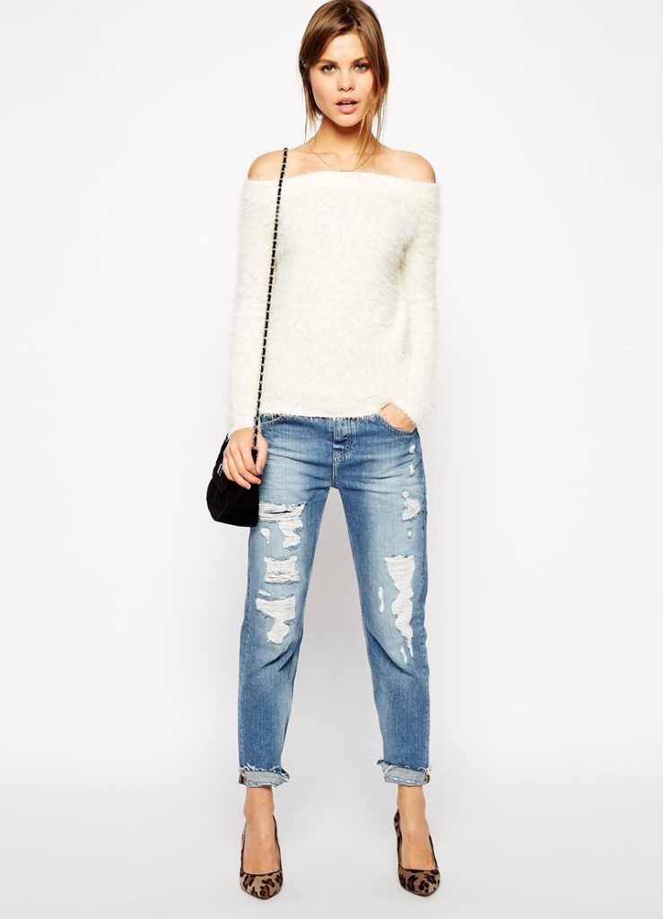 Розглянемо, з якими предметами гардеробу поєднується жіноча кофта з відкритими плечима.