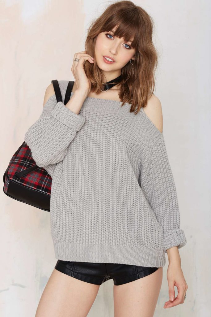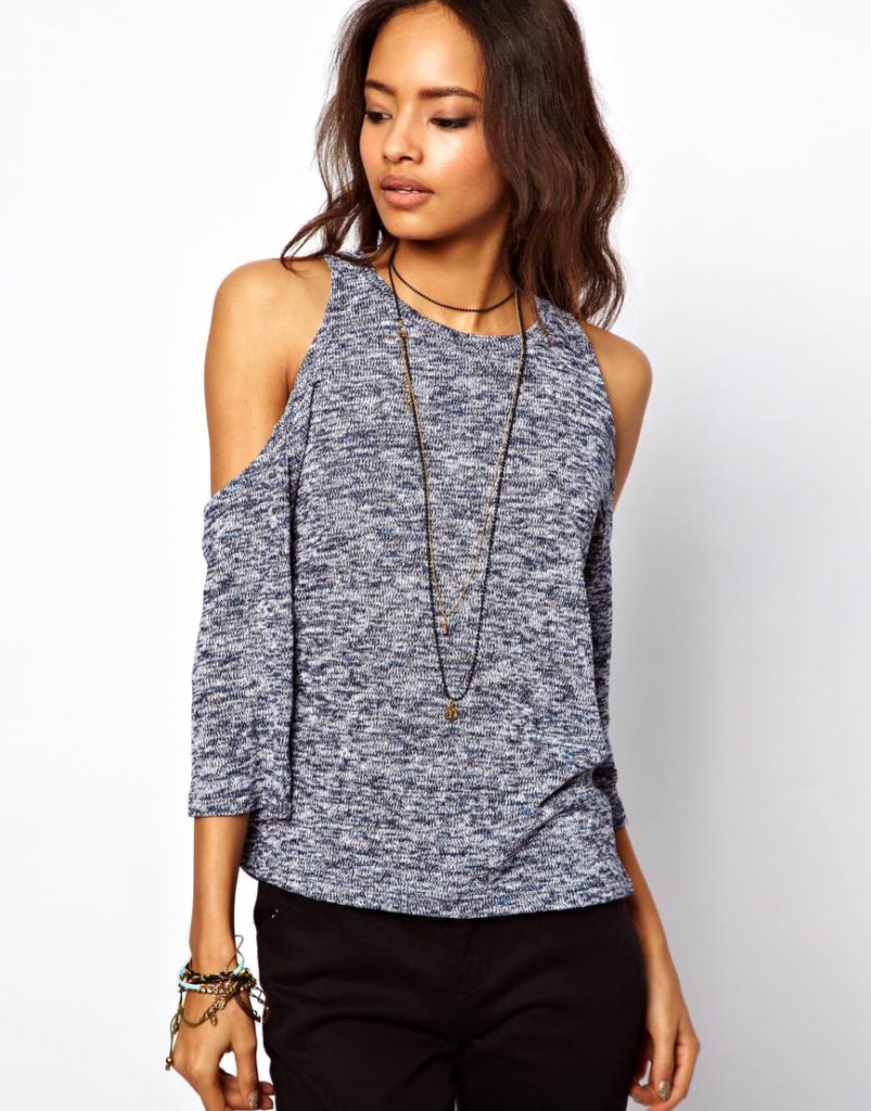 Трикотаж. Якщо на дворі холодно, то найкращий вибір — в’язаний светр з відкритими плечима. Сучасні прийоми в’язання допомагають створювати вельми незвичайні моделі: з фактурною, текстурованою поверхнею, витонченими косами та іншим декором. Такий светр чудово зігріє вдома і на роботі. Ці моделі — найпопулярніші з усіх, що й не дивно — їх комфорт, зручність і привабливий зовнішній вигляд неоціненні. До того ж, крім холодних зимових днів, їх можна носити і прохолодними літніми вечорами, не кажучи вже про міжсезоння.