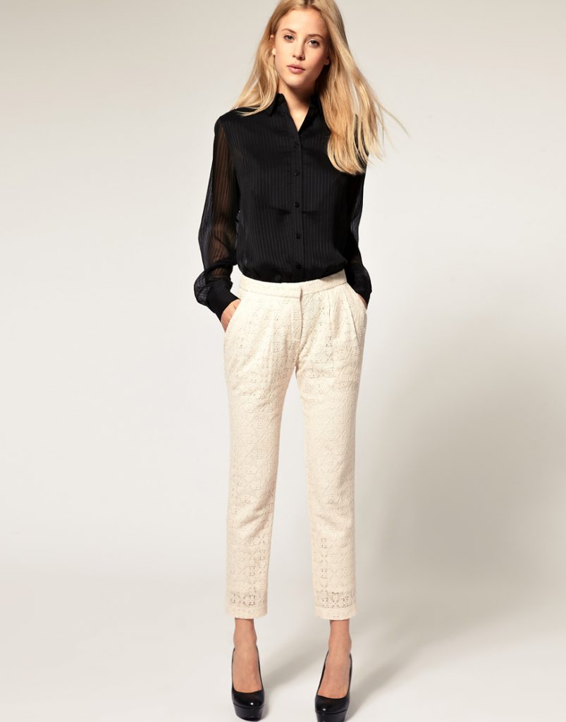 Ми звикли до стереотипу, що одяг з мережива повинна бути присутньою тільки у вечірній, святковий образі. Модельєри змогли зруйнувати цей стереотип, створивши повсякденні мереживні штани, в яких можна гуляти, працювати і відпочивати хоч кожен день.