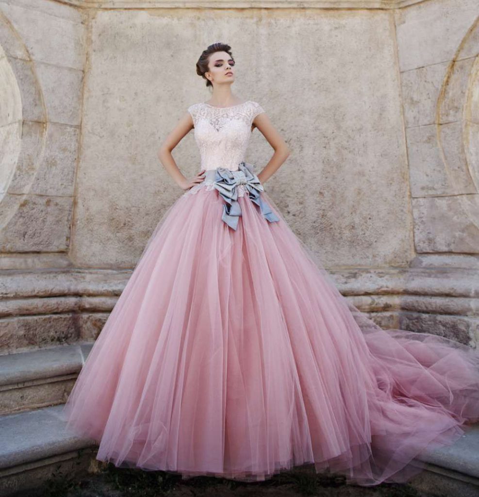 У вечірньої та весільної моди давно користуються популярністю сукні блідо-рожевих тонів. У такому одязі поширені такі фасони як пишна спідниця і корсет, хвилясті приталені силуети. Весільна сукня рожевого кольору не менш популярне, ніж білі вбрання. Довге пишне рожеве весільне плаття або мереживну вечірній рожеве плаття в підлогу – виглядають однаково ефектно і стильно.