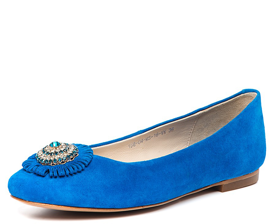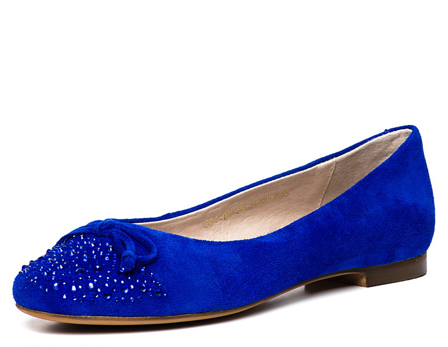 Щоб виглядати чарівно, але при цьому стримано, можна додати в робочий образ сині замшеві балетки. Вони виглядають ошатно і дорого і відмінно підійдуть під строгий офісний одяг.
