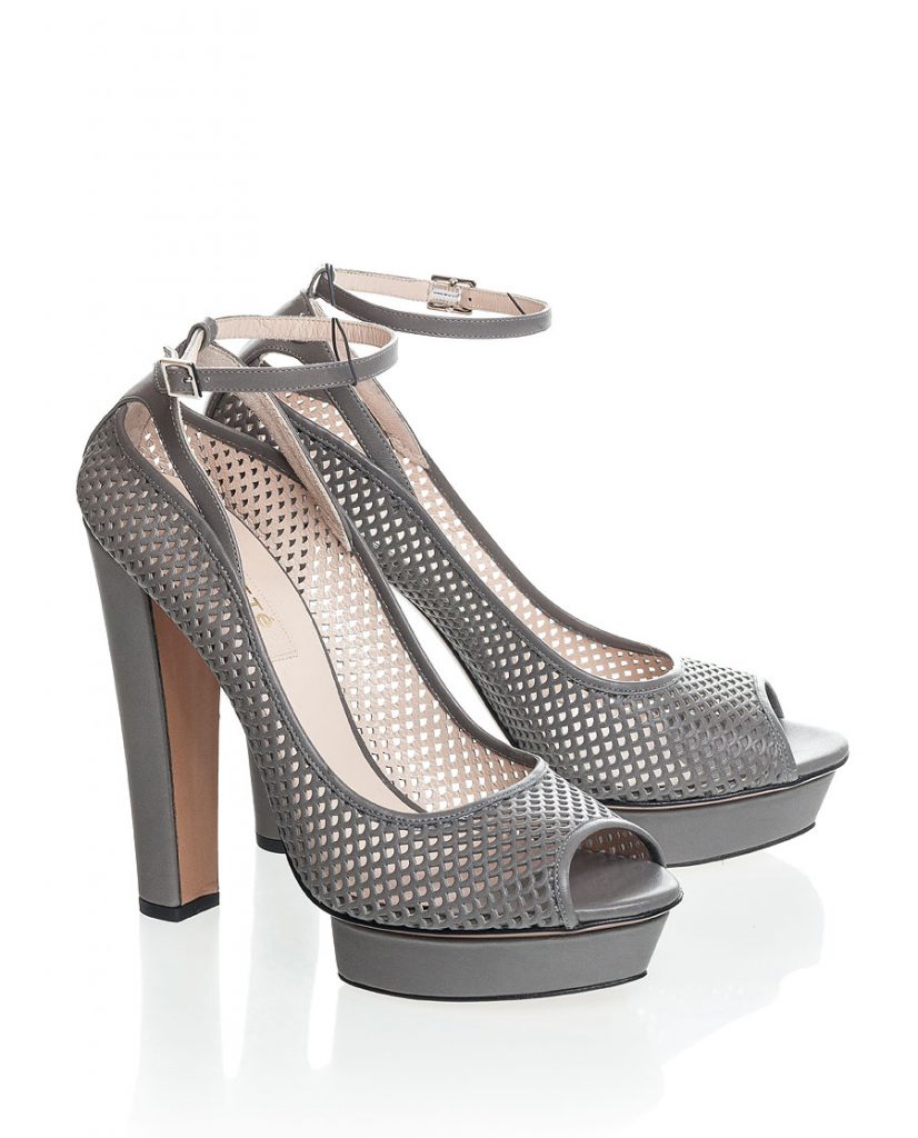 Прозорі підбори — «фішка» багатьох іменитих дизайнерів. Сірі босоніжки з таким каблуком набувають легкість, дарують образу невагомість, відмінно поєднуються з літніми повітряними нарядами.