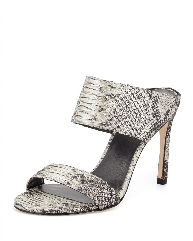 - Шкіра, звичайно, поза конкуренцією, якщо справа стосується взуття. Ось і при виготовленні босоніжок вона на першому місці. Сірі шкіряні моделі виглядають дуже витончено і жіночно, допомагають створити стильний образ, підійдуть і для роботи, і для вечірнього виходу. Зараз дуже популярна шкіра рептилій або стилізація під неї.