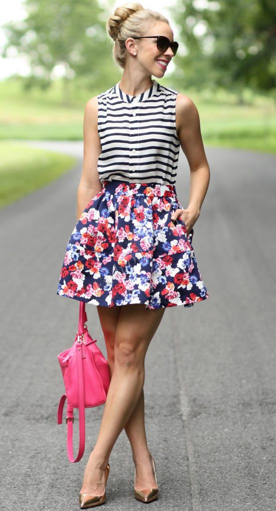 Яка дівчина, тим більше, якщо у неї красива і струнка фігура, відмовиться надіти міні-спідницю в дрібний або великий квіточку? Влітку її можна поєднувати з топом білого кольору або майкою в тон малюнку на спідниці. Для роботи краще вибрати сорочку (підійде і джинсова), частково заправлену в спідницю з квітковим принтом — це додасть образу нотку легковажності і витонченості. А в прохолодне час буде доречна коротка пишна спідниця з яскравим трикотажним джемпером. Останній, до речі, може мати певний декор. Головне — не перестаратися з ним, інакше вийде не стильний образ, а «розмита пляма».