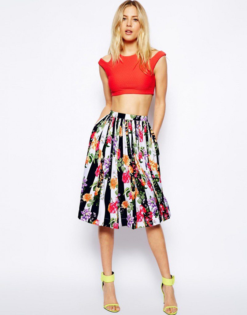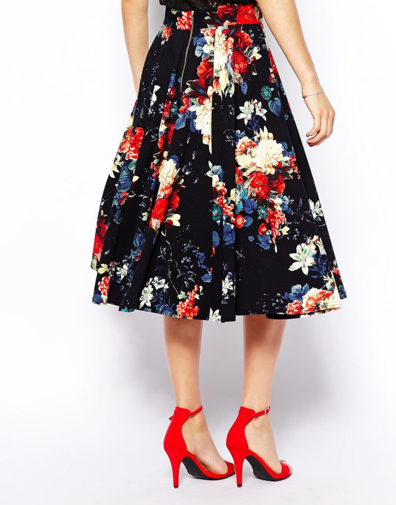 Спідниця-міді і не тільки з квітковим принтом — невід’ємна частина гардеробу будь-якої модниці. Носити її можна як у літній, так і в більш прохолодну пору року. Дана модель відмінно приховує всі недоліки фігури і підкреслює її переваги.