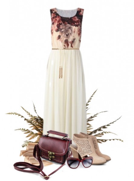 Богемний шик! Сонцезахисні окуляри, темна сумка і сірі чоботи літні — літній сарафан з квітковим принтом. Корисна стаття про сарафани: Як носити сарафани?