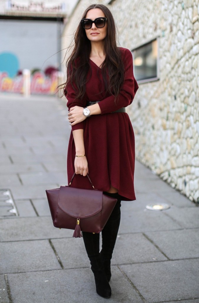 - Сукня вуличного стилю – це недбале, гармонійне втілення простого і красивого. Відтінок освітленого вина балансує дивовижний, повсякденний вигляд.