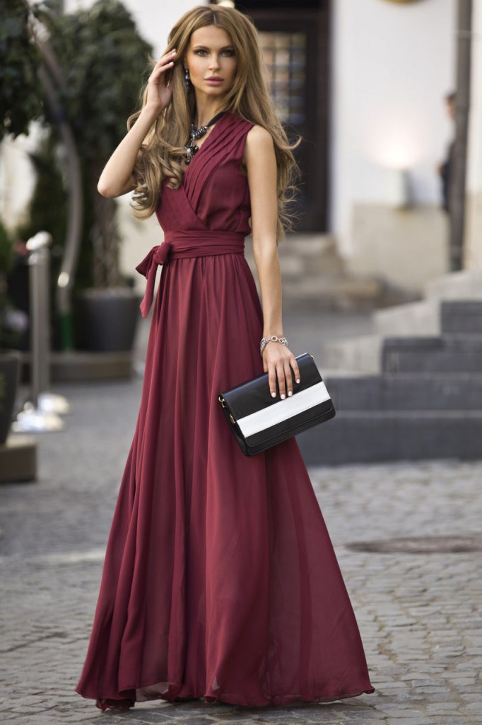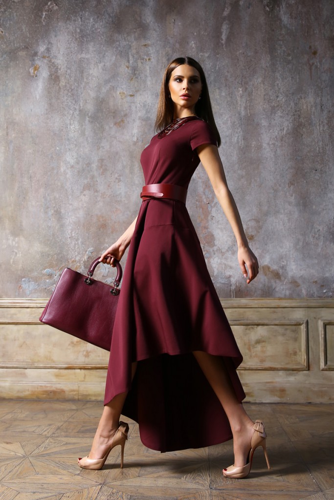 - Вечірній наряд – втілення ніжності, витонченості, романтичності. Актуальними залишаються довга модель у підлогу або короткий мереживне платьишко. Драпірування, декор посилюють у вбранні неповторна. Оздоблення незамінне на ділових фуршетах, ювілеях, весіллях, корпоративних заходах. В тренді «А-образні», полуприталенные, приталені моделі в підлогу. Якщо вам пощастило бути подружкою нареченої, краще варіанту не знайти. Незрівнянний контраст на тлі білосніжної нареченої. Вечірнє «марсаловое» одяг без вина рівносильно одурманивающему коктейлю. Носити його можна з кремовою, бежевій, тілесної взуттям та іншими спокійними аксесуарами.