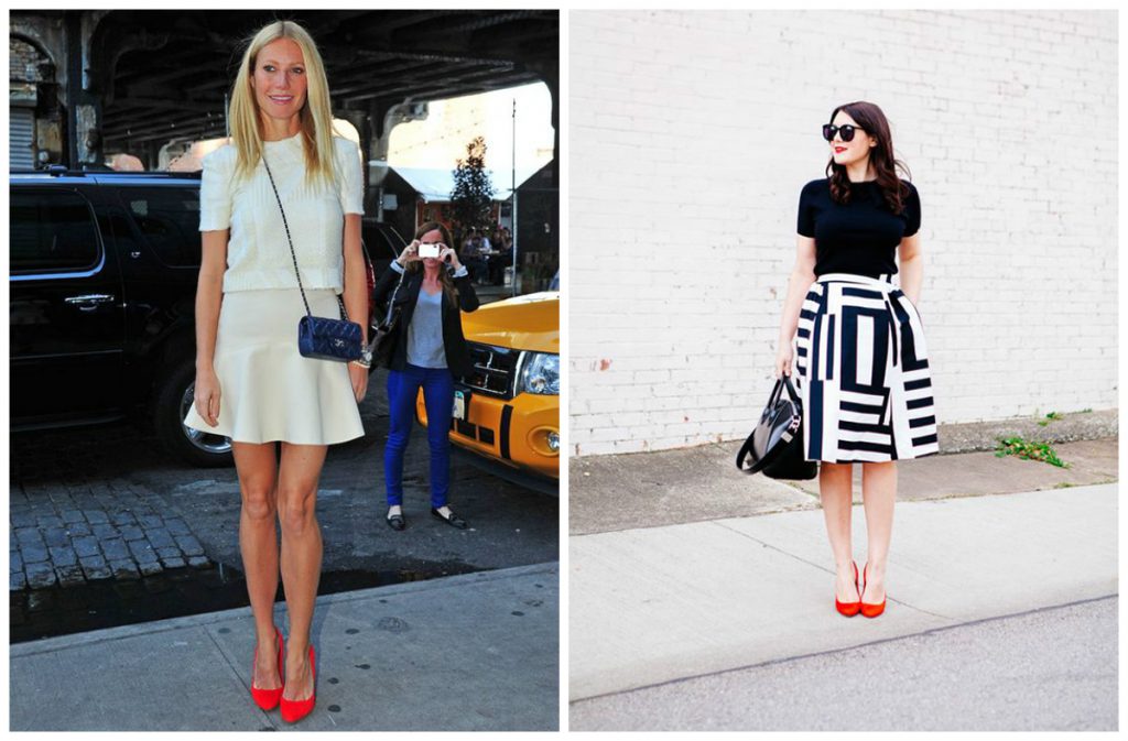 Взуття з круглим носком підходить практично до будь-спідниць, але особливо добре виглядає з розкльошеними моделями. Такий наряд має злегка вінтажне чарівність, що зараз дуже популярно. У поєднанні з міні-спідницею ботильйони або балетки з круглим носом на товстому каблуці трохи знизять «градус» наряду, а в поєднанні зі спідницею-олівець середньої довжини вийде відмінний варіант для офісу.