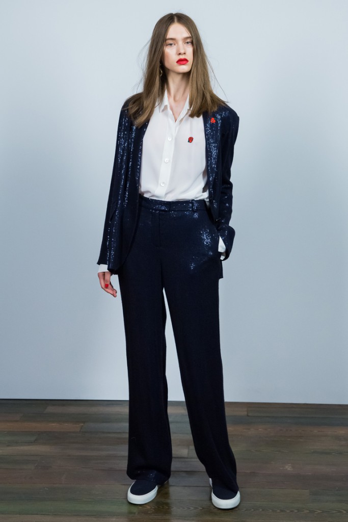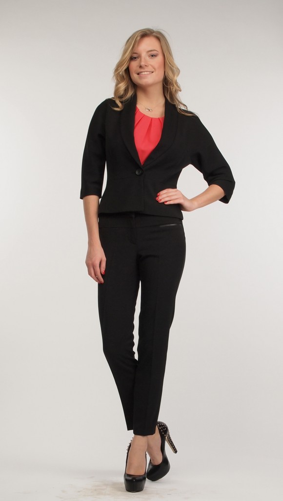 Прекрасно підходять під труби блузи в обтяжку, білі або кольорові сорочки. Якщо ви підбираєте жакет, зупиніться на приталених моделях, або на строго сидять по фігурі варіантах.