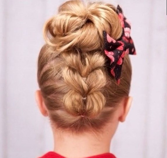 Традиційною зачіскою на випускний вечір вважають косички у формі «бубликів», прикрашені білими бантами. Робиться вона просто: потрібно зав’язати з боків два