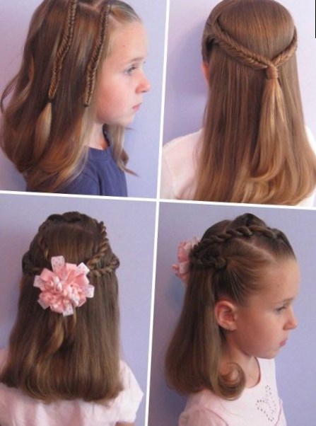 Для маленької дівчинки з волоссям середньої довжини або довгими прекрасним варіантом стане проста зачіска, яку ви зможете зробити за допомогою звичайних