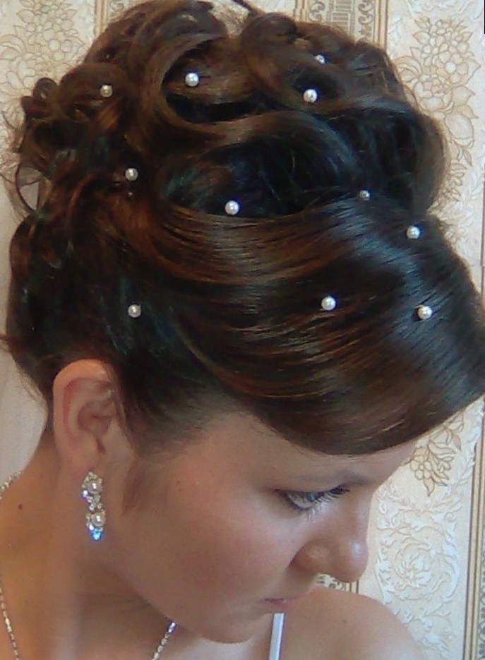 Мода на таку модель прийшла до нас з Іспанії. Для неї найбільш вдалими будуть гладкі і стримані зачіски, укладені в елегантний пучок волосся,