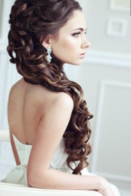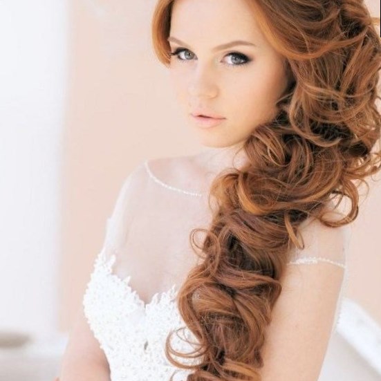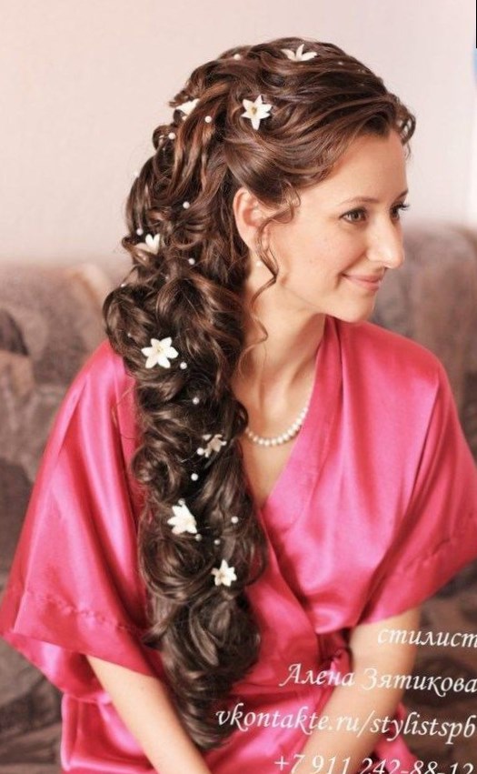 Яскравою, жіночною зачіскою на випускний на довге волосся є фіксування збоку закручених локонами волосся. Така зачіска виглядає дуже ефектно: