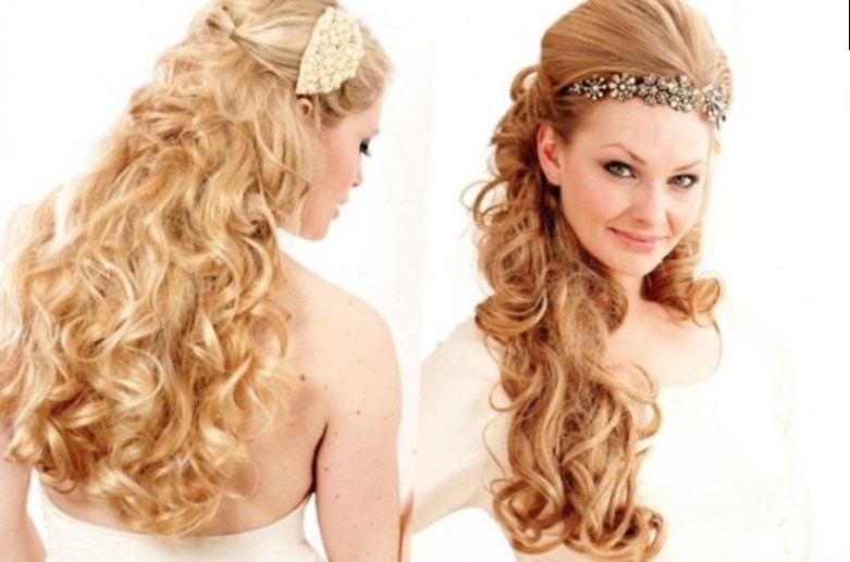 Зачіска на весілля з довгого волосся може бути прикрашена стилістом казкової діадемою, закріпленої з боків