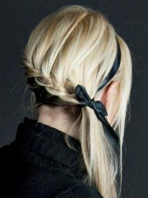 • Зберіть передні пасма на потилиці і прикрасьте стрічкою – особа відкриється і всі побачать старанну колишню школярку.