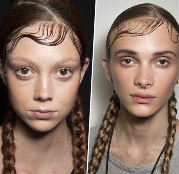 Для колекції DKNY були обрані інші зачіски коси з чубком. Пара простих (їх ще називають «спортивними») кісок в поєднанні з зигзагоподібним проділом