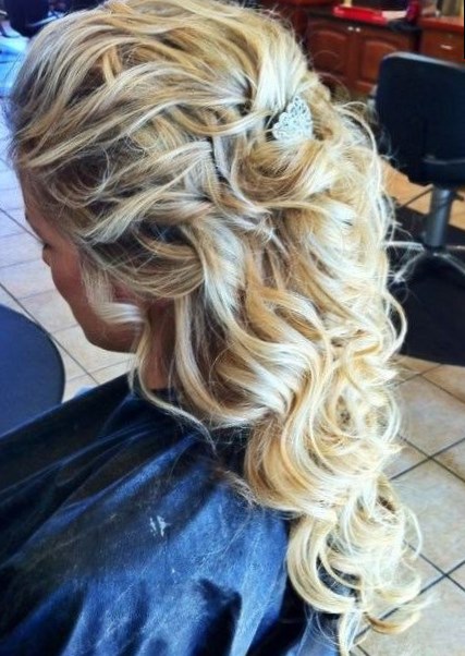 Якщо ви вибрали ніжний і романтичний образ, то ця зачіска на випускний вечір ідеально підійде. За вашим бажанням можна зробити як легку хвилю,