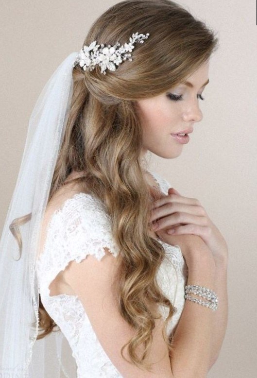 Вибір весільних зачісок з фатою на середні волосся є найбільшим. В останні роки популярними