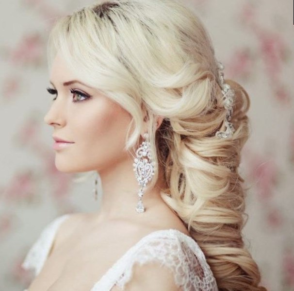 Цей вид весільної зачіски вважається самим актуальним. Сформуйте прямий проділ, з одного боку підберіть їх, заколіть і прикрасьте квіткою.