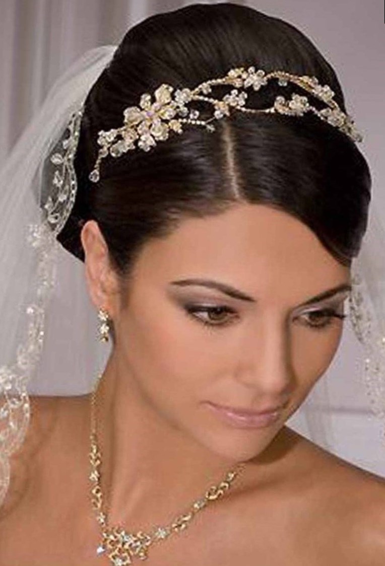 Весільні зачіски з діадемою можуть бути доповнені невеликим кількістю дрібних прикрас замість фати наприклад, невеликі