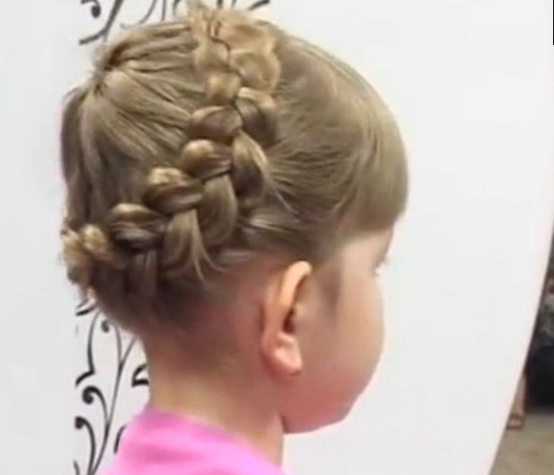 Після того, як ви доведете до досконалості вміння плести першу косу “колосок”, спробуйте такий варіант зачіски для дівчаток в домашніх умовах.