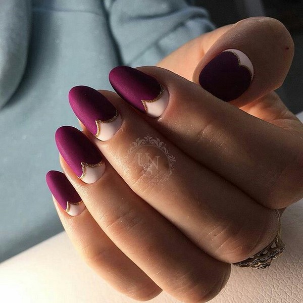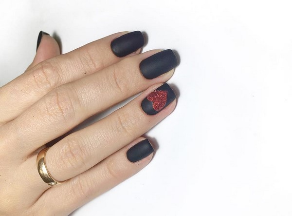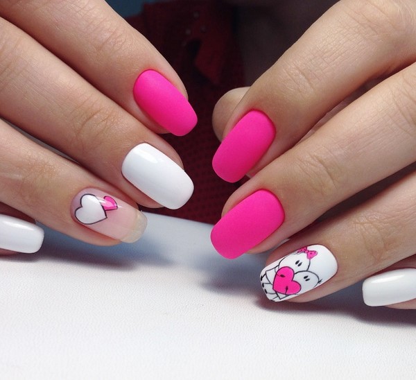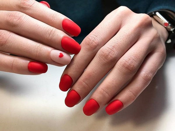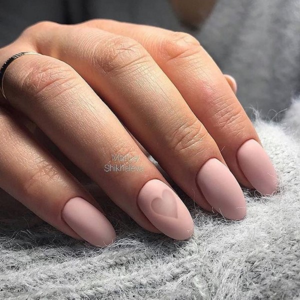 Одним з топових варіантів манікюру 2019-2020 голи є матові ноготочки, що не привертають зайву увагу до ручок, але в той же час виглядають досить ефектно. Матовий дизайн нігтів на 14 лютого також можна доповнити сердечками, написами, при бажанні – використовуючи різні відтінки гель лаку.