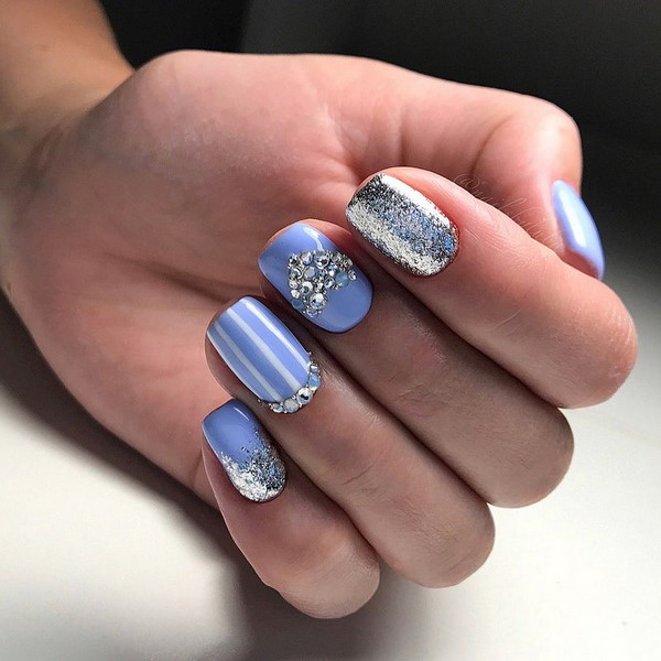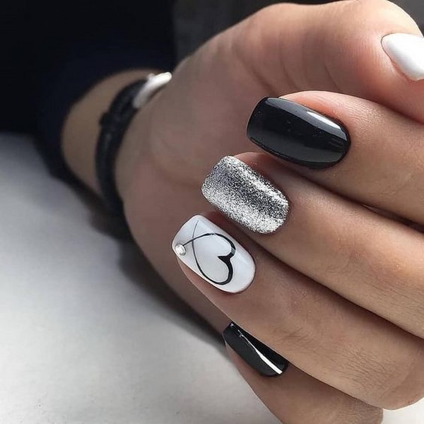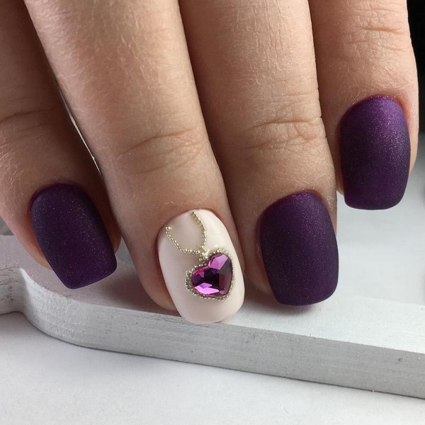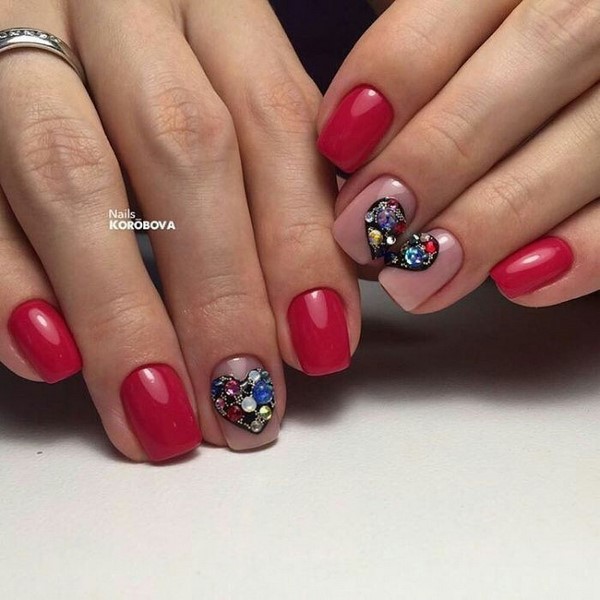 Одним з найбільш інтригуючих і ефектних дизайнів нігтів буде модний манікюр зі стразами у вигляді сердечок, що будуть чудово красиві і чарівні в своєму сяйві на пальчиках в День всіх закоханих для завершення образу на вечірку або романтичну вечерю.